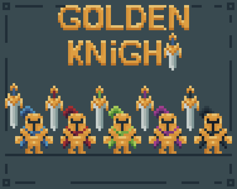 -Gold Knight (Blue,Red,Green,Purple,Dark Grey) Default and Custom version with animations - Attack(1,2,3,4) , Ultimate Attack , Run , Walk , Idle , Jump(JumpTakeOf - JumpLoop - JumpLand) , Death , Hurt.